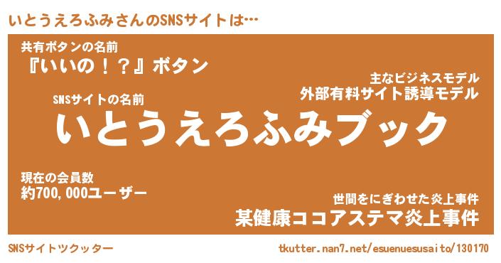 | 女子向けラノベタイトル風あだ名 | 『誰かこのいとうえろふみを説明してください! ~契約から始まるウェディング~』 |
