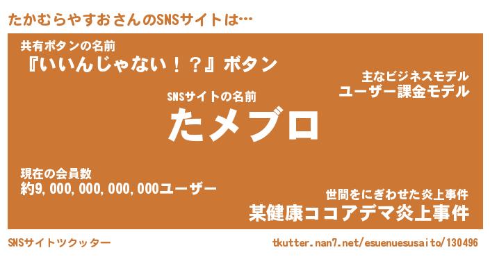 | 肩書あだ名 | 『たかむらやすおCEO』 |
