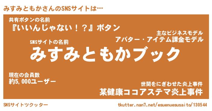 | 胡散臭い通販商品みたいなあだ名 | 『億万長者になれるブレスレット…その名も「みすみともか」』 |