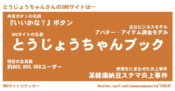 | 胡散臭い通販商品みたいなあだ名 | 『億万長者になれるブレスレット…その名も「とうじょうちゃん」』 |