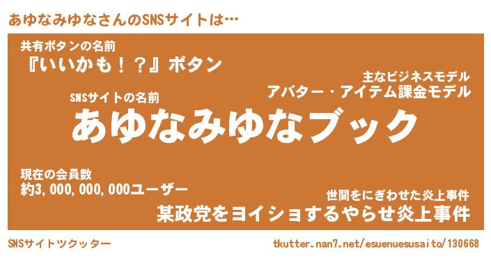 | 胡散臭い通販商品みたいなあだ名 | 『億万長者になれる霊験あらたかなお札…その名も「あゆなみゆな」』 |