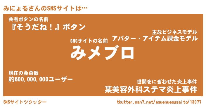 | 欧米人風あだ名 | 『マイケルみにょる』『ウサインみにょる』 |