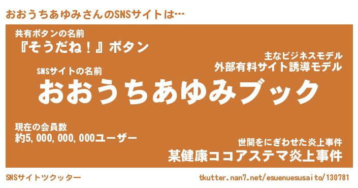 | 胡散臭い通販商品みたいなあだ名 | 『億万長者になれる霊験あらたかなお札…その名も「おおうちあゆみ」』 |