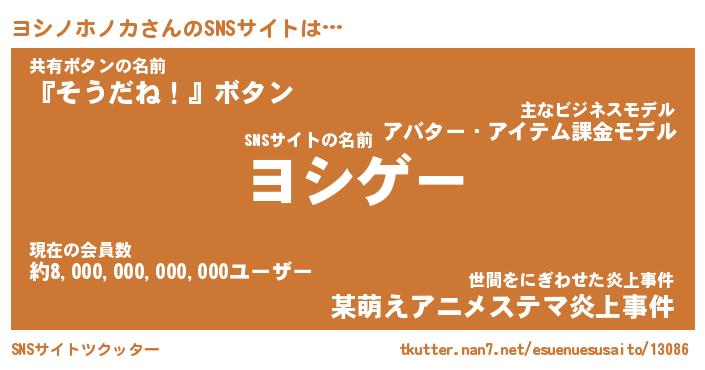 | 胡散臭い通販商品みたいなあだ名 | 『必ず成功する水晶球…その名も「ヨシノホノカ」』 |