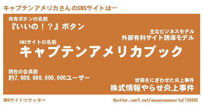 | 胡散臭い通販商品みたいなあだ名 | 『億万長者になれる霊験あらたかなお札…その名も「キャプテンアメリカ」』 |