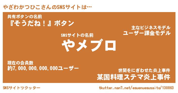 | 肩書あだ名 | 『やざわかつひこCEO』 |