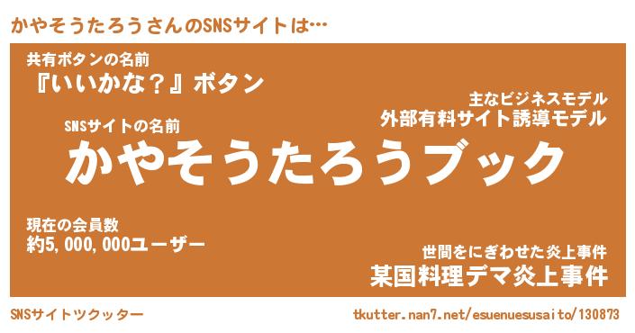| 胡散臭い通販商品みたいなあだ名 | 『億万長者になれる霊験あらたかなお札…その名も「かやそうたろう」』 |