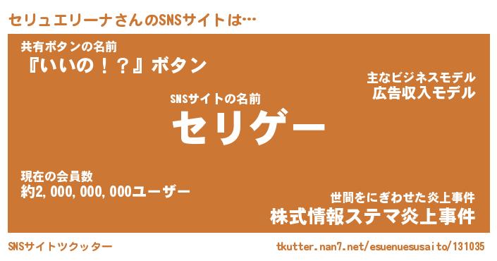 | 胡散臭い通販商品みたいなあだ名 | 『必ず成功する霊験あらたかなお札…その名も「セリュエリーナ」』 |