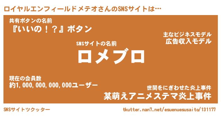| 男性向けラノベタイトル風あだ名 | 『ロイヤルエンフィールドメテオアートオンライン』 |