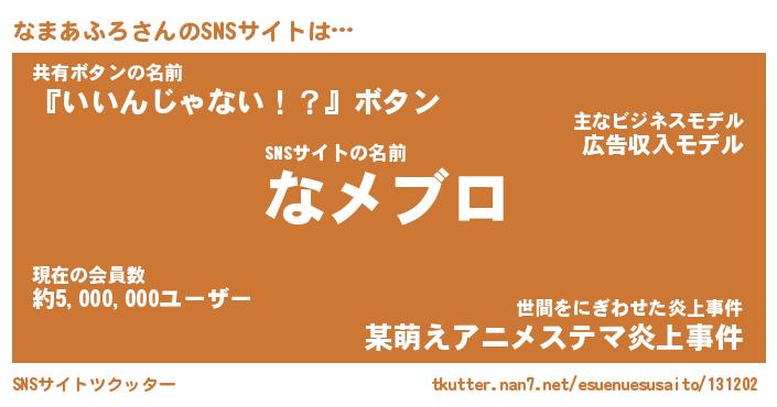 | 男性向けラノベタイトル風あだ名 | 『ナマアフロアートオンライン』 |