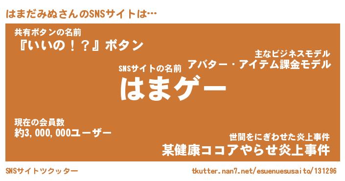 | ヘコむあだ名 | 『はまにー』『豆乳』『はまお』 |