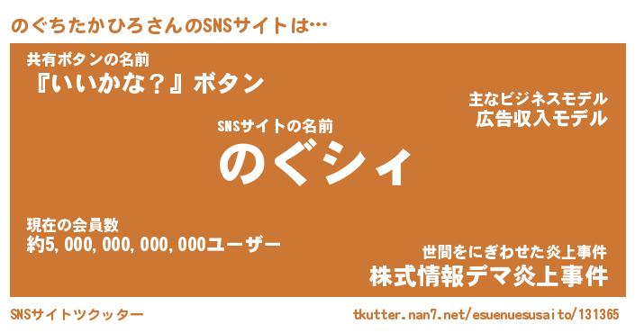 | 男性向けラノベタイトル風あだ名 | 『のぐちたかひろの憂鬱』 |