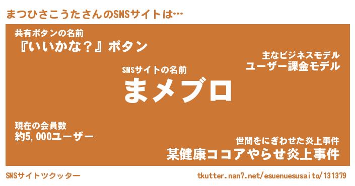 | 胡散臭い通販商品みたいなあだ名 | 『モテモテ間違いなし霊験あらたかなお札…その名も「まつひさこうた」』 |