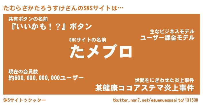 | 肩書あだ名 | 『たむらさかたろうすけ社長』 |