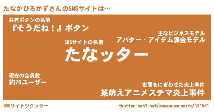 | ポケモン風あだ名 | 『タナチュウ』『タナカダネ』 |