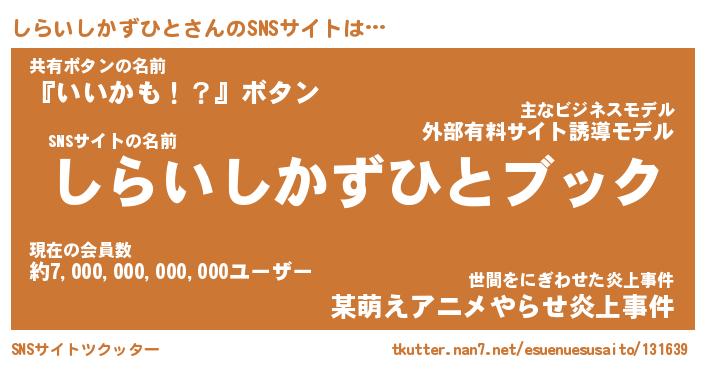 | 肩書あだ名 | 『しらいしかずひとCEO』 |