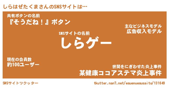 | ヘコむあだ名 | 『しらっふぃ~』『なまこ酢』 |