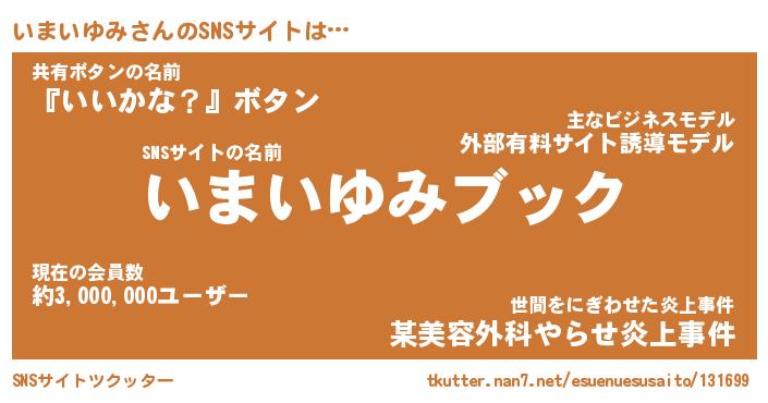 | 胡散臭い通販商品みたいなあだ名 | 『億万長者になれるブレスレット…その名も「いまいゆみ」』 |