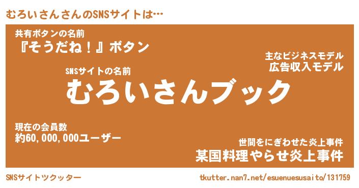 | 胡散臭い通販商品みたいなあだ名 | 『億万長者になれる霊験あらたかなお札…その名も「むろいさん」』 |