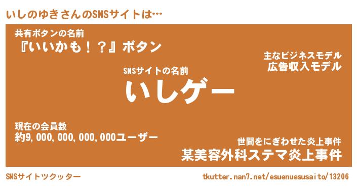 | 肩書あだ名 | 『いしのゆき社長』『いしのゆき総理大臣』 |