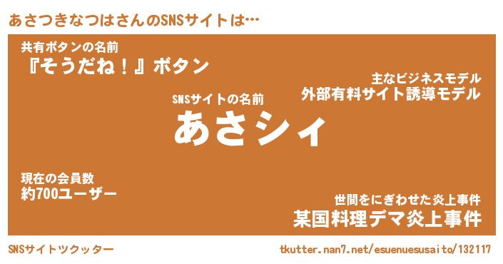 | ヘコむあだ名 | 『あさっふぃ~』『牛乳』 |