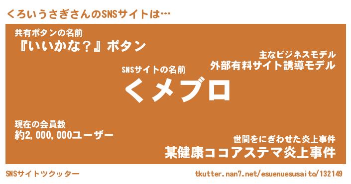 | 肩書あだ名 | 『くろいうさぎ店長』『くろいうさぎ団長』 |