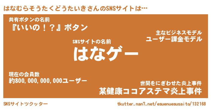 | 胡散臭い通販商品みたいなあだ名 | 『必ず成功する霊験あらたかなお札…その名も「はなむらそうたくどうたいき」』 |