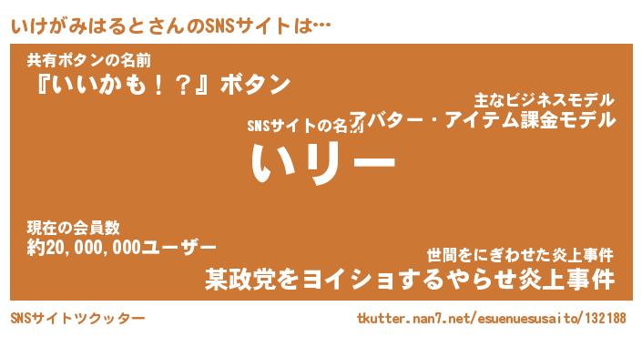 | ヘコむあだ名 | 『いけもー』『なまこ酢』『いけっ子』 |