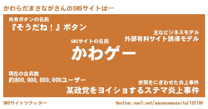 | 胡散臭い通販商品みたいなあだ名 | 『必ず成功する霊験あらたかなお札…その名も「かわらだまさなが」』 |