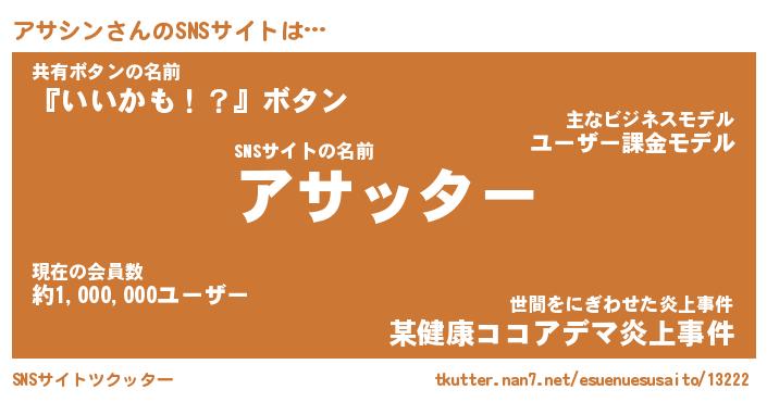 | 男性向けラノベタイトル風あだ名 | 『アサシンアートオンライン』 |