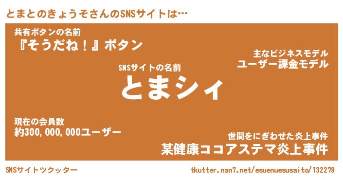 | ヘコむあだ名 | 『とまふぇ~』『酢こんぶ』『とまお』 |