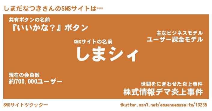 | 胡散臭い通販商品みたいなあだ名 | 『必ず成功するブレスレット…その名も「しまだなつき」』 |