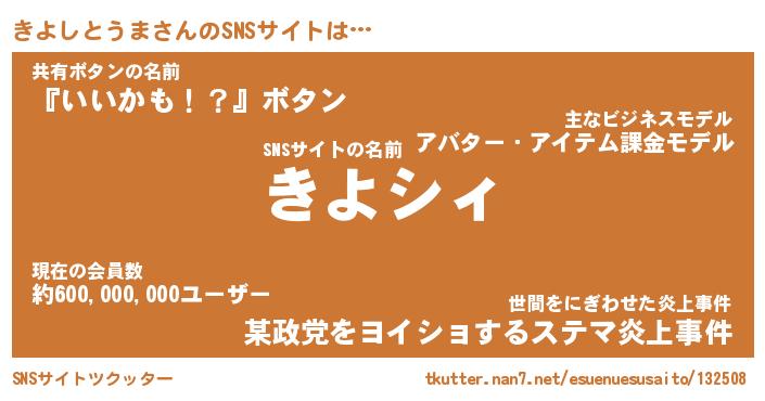 | 胡散臭い通販商品みたいなあだ名 | 『必ず成功する霊験あらたかなお札…その名も「きよしとうま」』 |