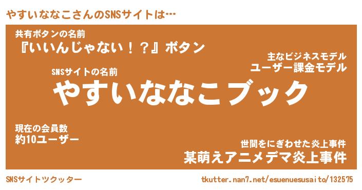 | 男性向けラノベタイトル風あだ名 | 『ヤスイナナコアートオンライン』 |