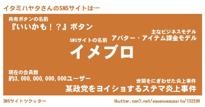 | ヘコむあだ名 | 『イタもー』『なまこ酢』『イタを』 |
