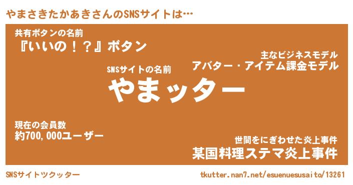 | 胡散臭い通販商品みたいなあだ名 | 『億万長者になれる霊験あらたかなお札…その名も「やまさきたかあき」』 |
