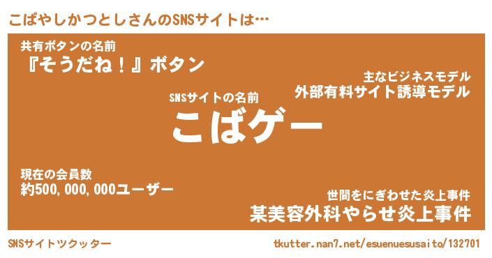 | ヘコむあだ名 | 『こばにゅー』『なまこ酢』 |