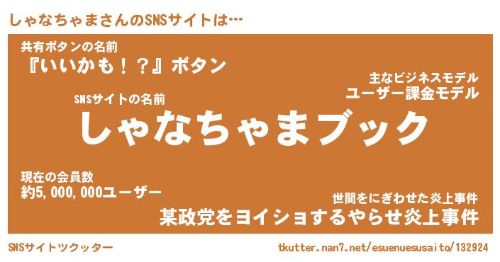 | 肩書あだ名 | 『しゃなちゃま社長』『しゃなちゃま班長』 |