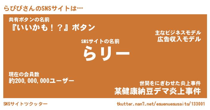 | ヘコむあだ名 | 『らぴにゅー』『なまこ酢』 |