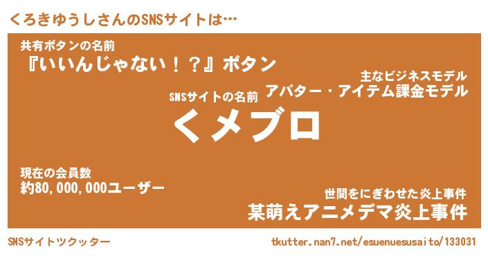 | 男性向けラノベタイトル風あだ名 | 『クロキユウシアートオンライン』 |