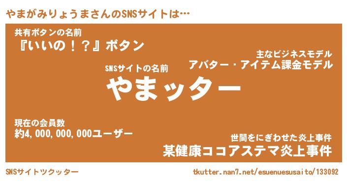 | 胡散臭い通販商品みたいなあだ名 | 『億万長者になれる水晶球…その名も「やまがみりょうま」』 |
