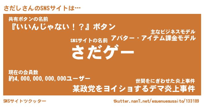 | 意味不明あだ名 | 『ペロリンさだし』『さだしフォーエバー』 |