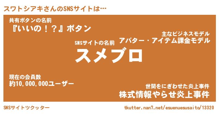 | 男性向けラノベタイトル風あだ名 | 『スワトシアキアートオンライン』 |