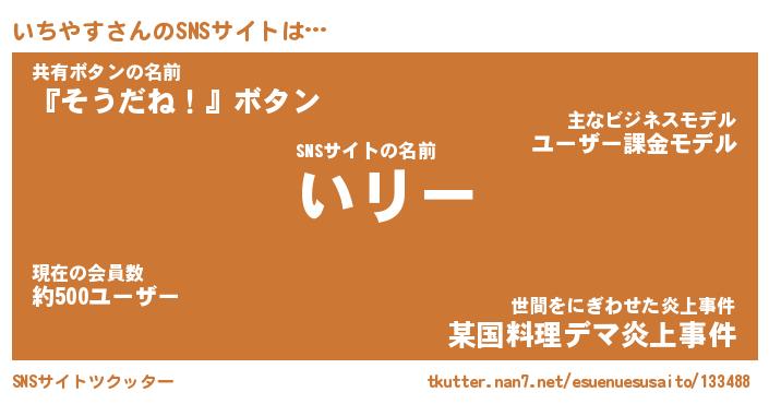 | 男性向けラノベタイトル風あだ名 | 『いちやすの憂鬱』 |