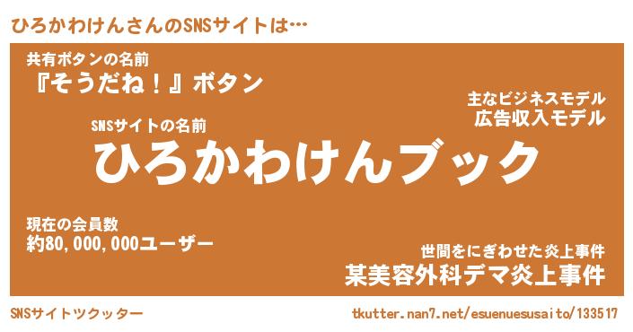 | 肩書あだ名 | 『ひろかわけん社長』『ひろかわけん団長』 |