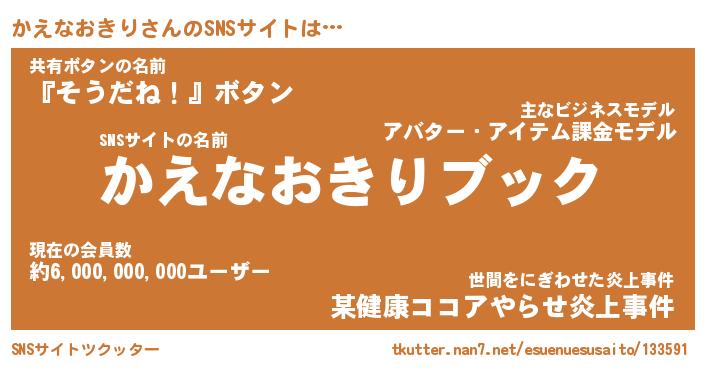 | 男性向けラノベタイトル風あだ名 | 『カエナオキリアートオンライン』 |