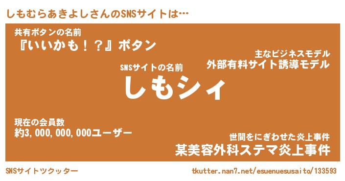 | 胡散臭い通販商品みたいなあだ名 | 『必ず成功するブレスレット…その名も「しもむらあきよし」』 |