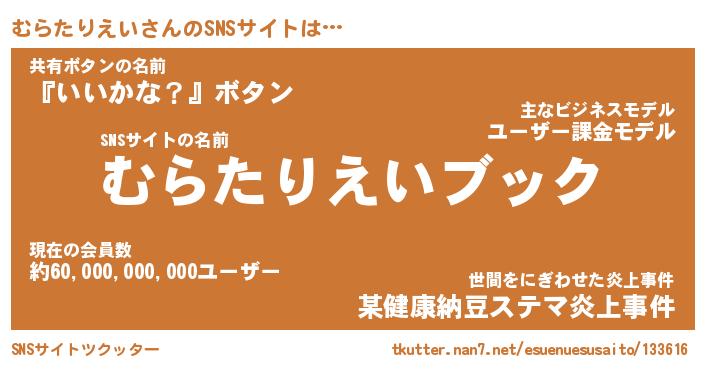| 胡散臭い通販商品みたいなあだ名 | 『億万長者になれるブレスレット…その名も「むらたりえい」』 |