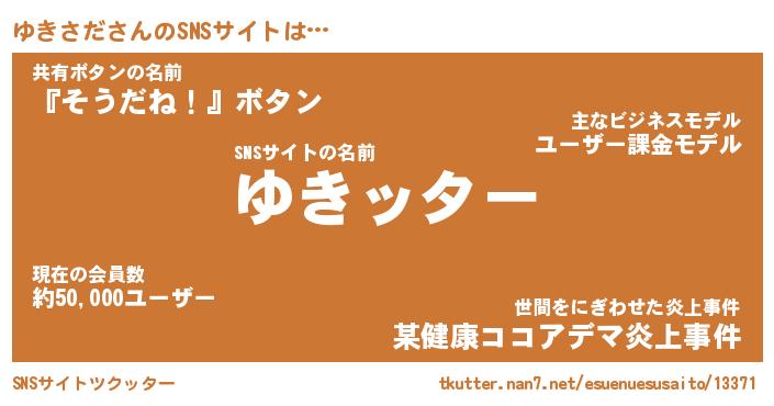 | 胡散臭い通販商品みたいなあだ名 | 『億万長者になれるブレスレット…その名も「ゆきさだ」』 |