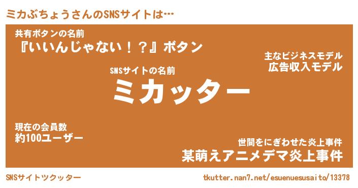 | 欧米人風あだ名 | 『マイケルミカぶちょう』 |